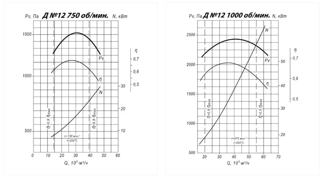 Технические характеристики Дымососы Д №12 , исполнение 1