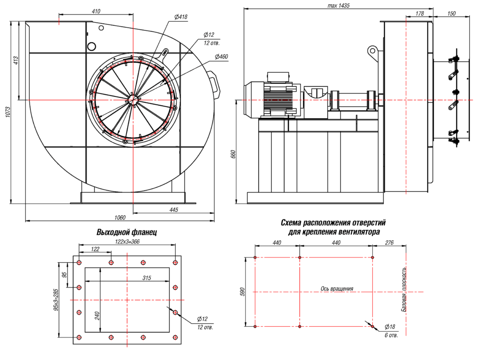 Габаритные и присоединительные размеры ДН №6,3, Исполнение 3