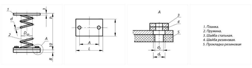 Тип виброизолятораВертикальная жесткость, кН/мВысота в свободном состоянии, мм Деформация рабочая, ммДеформация предельная, ммНагрузка рабочая, кННагрузка предельная, кНD, мм