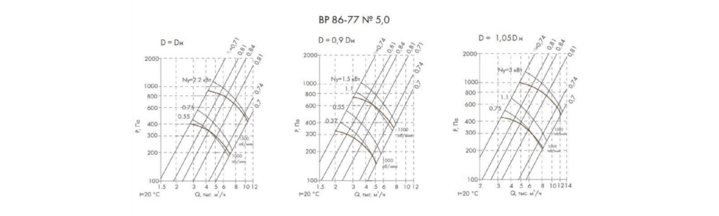 Вентиляторы серии ВР 86-77 взаимозаменяемы по аэродинамическим характеристикам с вентиляторами серии ВР 80-75, ВР 85-77;